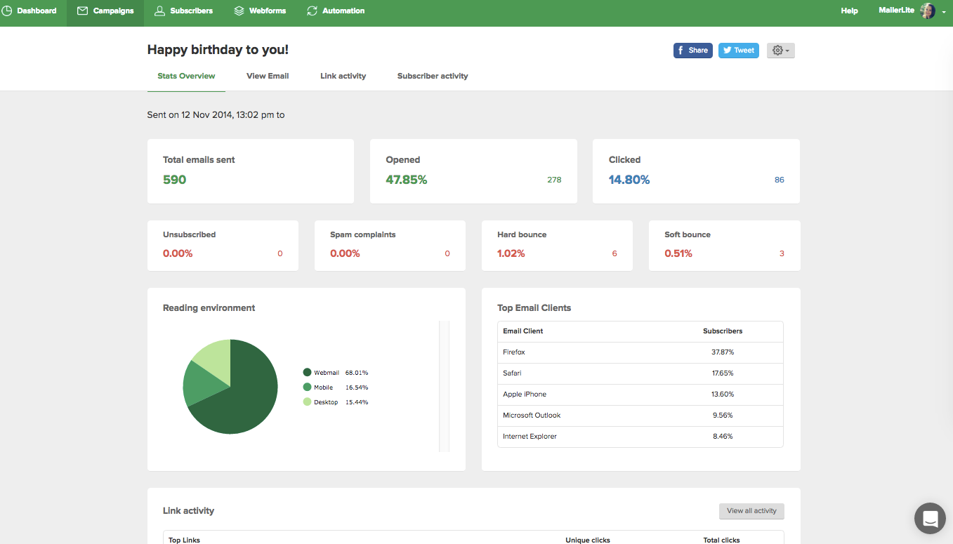 ConvertKit also have some clever features like link tagging which is great for anyone that's wanting to go to that next level with their email marketing.